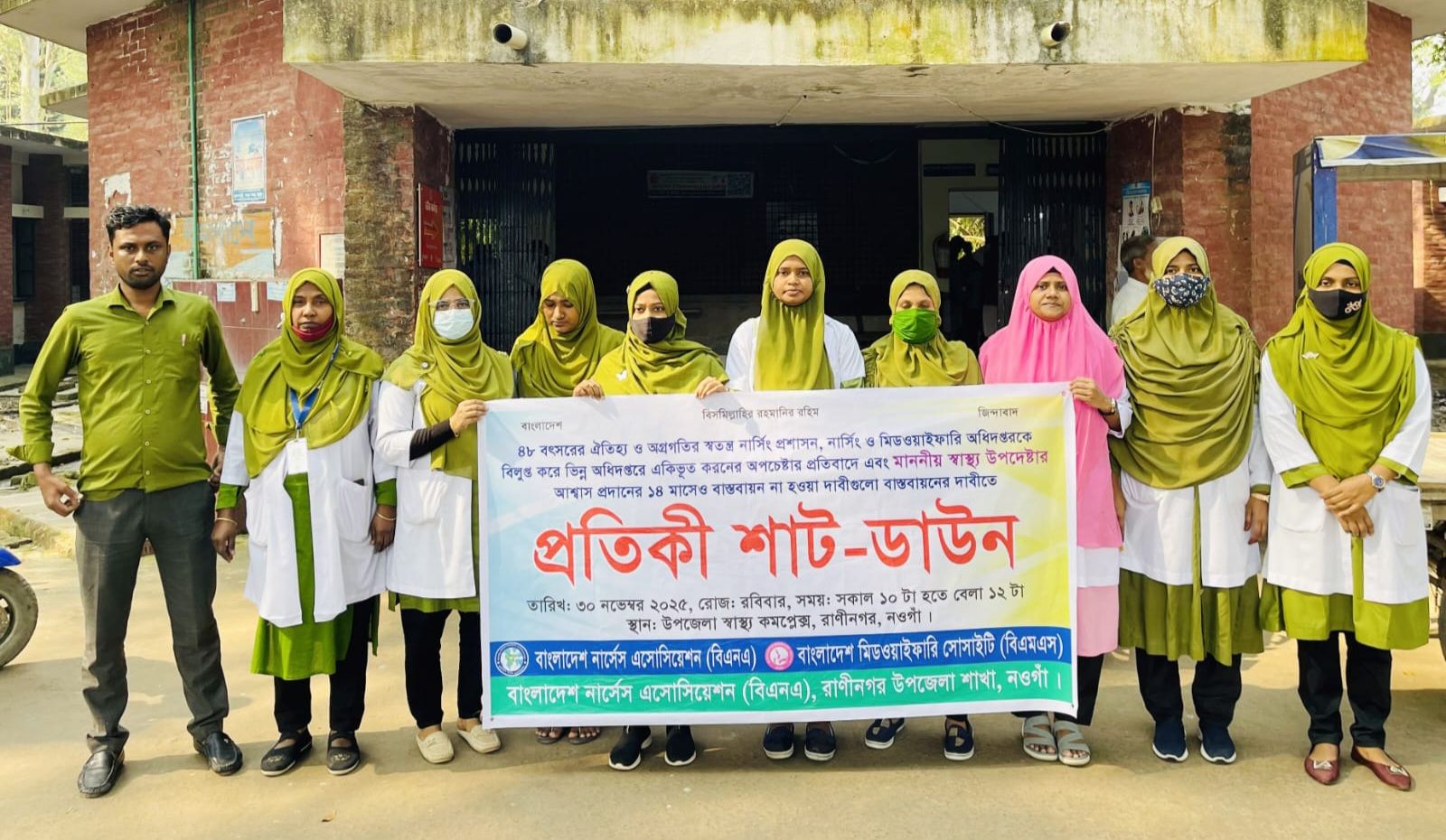 ৮দফা দাবিতে রোগীদের স্বাস্থ্য সেবা বন্ধ রেখে নার্সদের প্রতিকী শাট-ডাউন