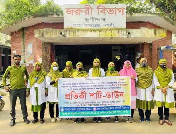 রোগীদের স্বাস্থ্য সেবা বন্ধ রেখে নার্সেদের প্রতিকী শাট-ডাউন