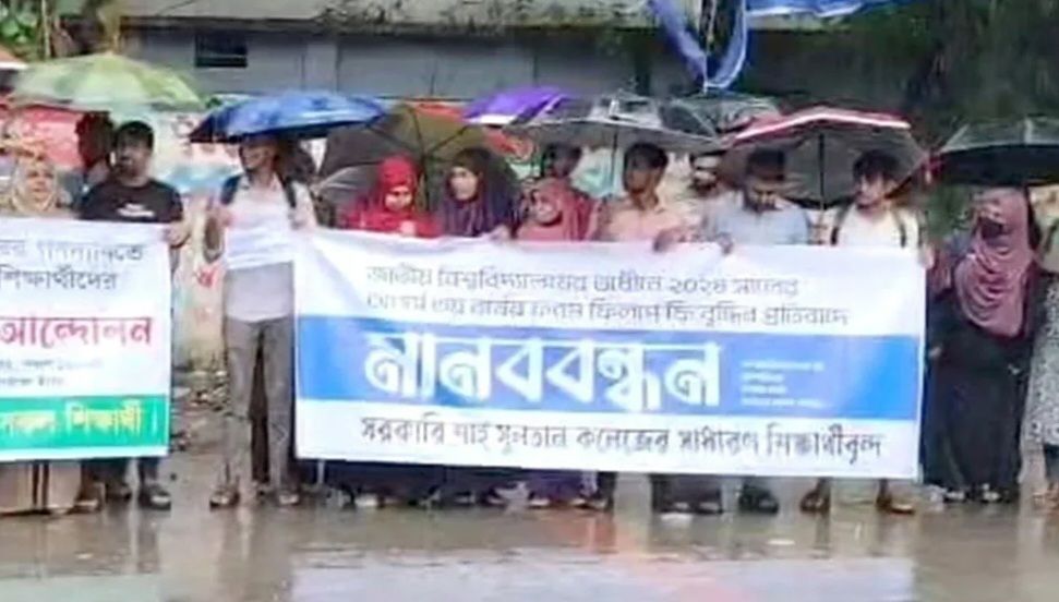 ফি বৃদ্ধির প্রতিবাদে বগুড়ায় শিক্ষার্থীদের মানববন্ধন