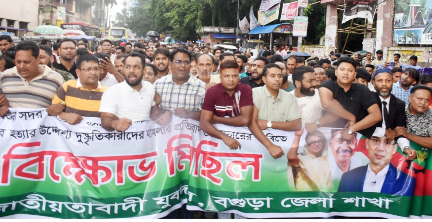 বগুড়ায় উপজেলা যুবদল সভাপতির ওপর মুখোশধারী হামলার ঘটনায় জেলা যুবদলের বিক্ষোভ