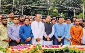 বঙ্গবন্ধুর প্রতিকৃতিতে পুষ্পস্তবক অর্পণ ও শ্রদ্ধা নিবেদন