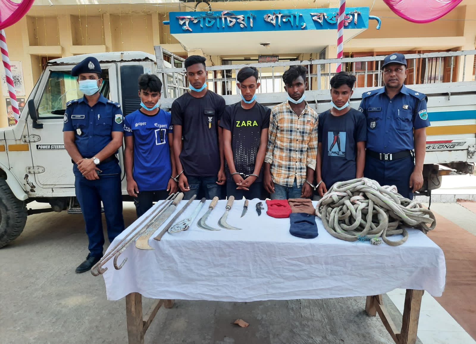 বগুড়ায় ডাকাতির প্রস্তুতির সময় গ্রেফতার ৫, দেশীয় অস্ত্র-পিকআপ উদ্ধার