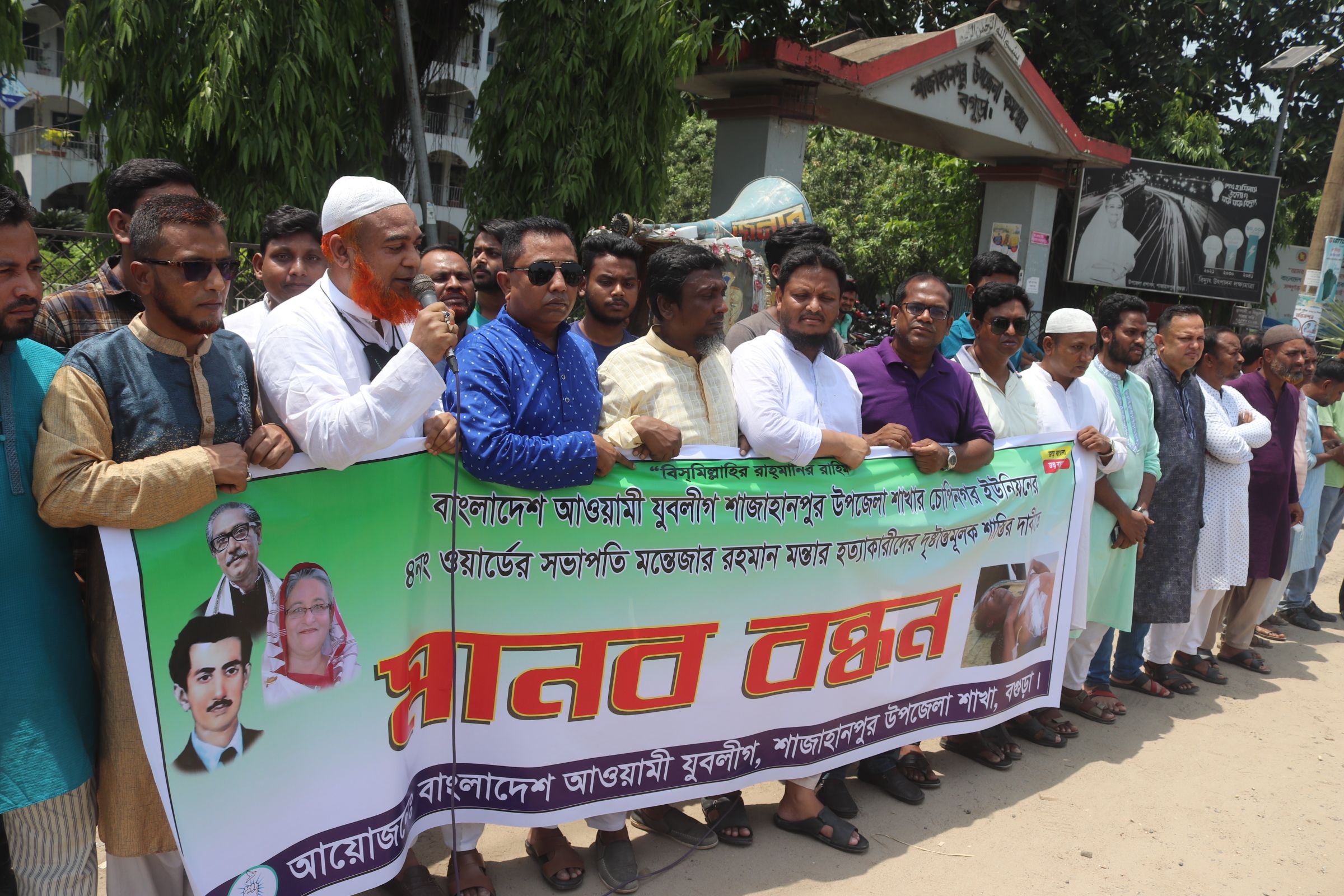 শাজাহানপুরে মন্তা’র হত্যকারীদের শাস্তির দাবিতে উপজেলা যুবলীগের মানব বন্ধন