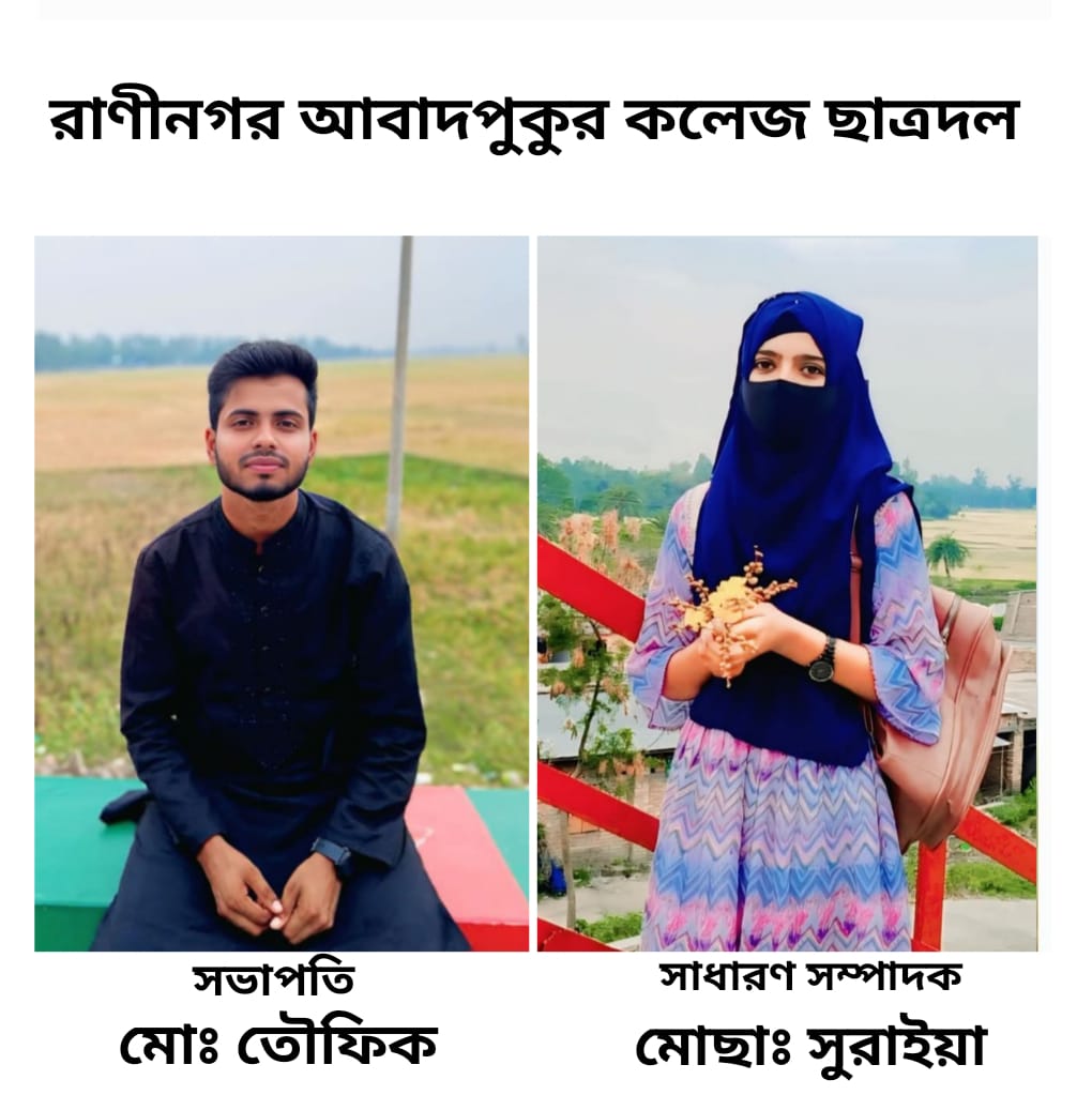 আবাদপুকুর কলেজ শাখা ছাত্রদলের আংশিক কমিটির অন্যান্যরা হলেন সিনিয়র সহ-সভাপতি মেফতাহুল ইসলম, সিনিয়র যুগ্ন সম্পাদক শিহাব ইসলাম ও সাংগঠনিক সম্পাদক ইমরান হোসেন।