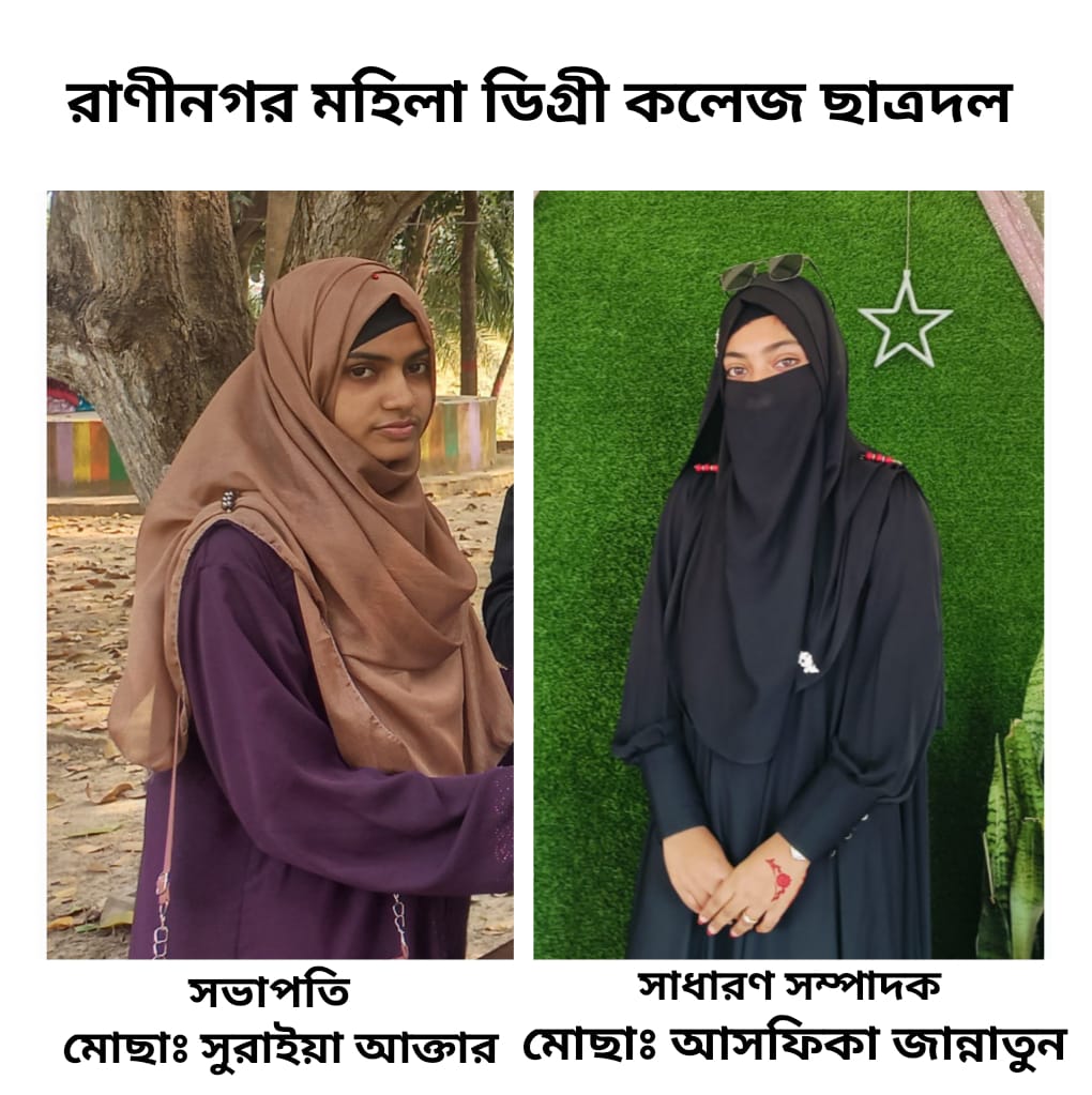 রাণীনগর মহিলা ডিগ্রি কলেজ ছাত্রদলের আংশিক কমিটির অন্যান্যরা হলেন সিনিয়র সহ-সভাপতি কুমারী পূজা রাণী, সহ-সভাপতি নুসরাত আক্তার, সিনিয়র যুগ্ন সম্পাদক মোছা: বর্ষা, সাংগঠনিক সম্পাদক মোছা: হাসি আক্তার, দপ্তর সম্পাদক সুমাইয়া আক্তার ও প্রচার সম্পাদক জেরিন আক্তার জুই।