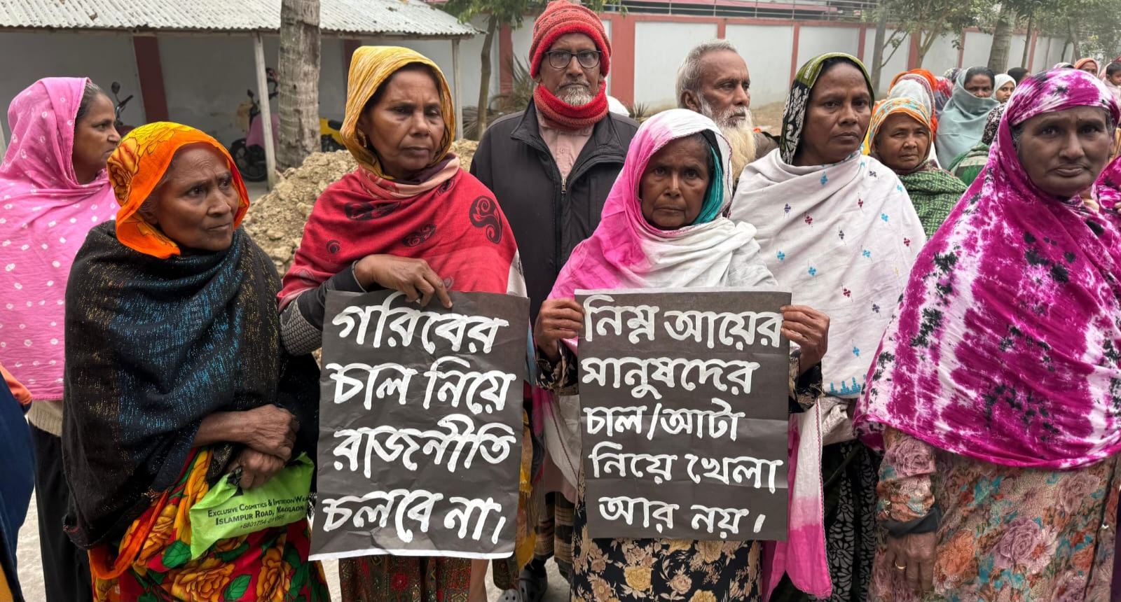 নওগাঁয় খাদ্য নিয়ন্ত্রকের কার্যালয় ঘেরাও করে বিক্ষোভ হতদরিদ্রদের