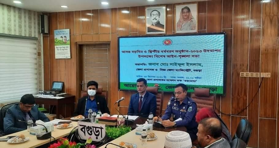 আসন্ন বড়দিন ও খ্রিষ্টীয় বর্ষবরণ অনুষ্ঠান উদযাপান উপলক্ষে শনিবার বগুড়া জেলা প্রশাসকের সম্মেলন কক্ষে বেলা ১২ টায় বিশেষ আইন-শৃঙ্খলা সভা অনুষ্ঠত হয়েছে। এতে সভাপতিত্ব করেন বগুড়া জেলা প্রশাসক মো: সাইফুল ইসলাম ।