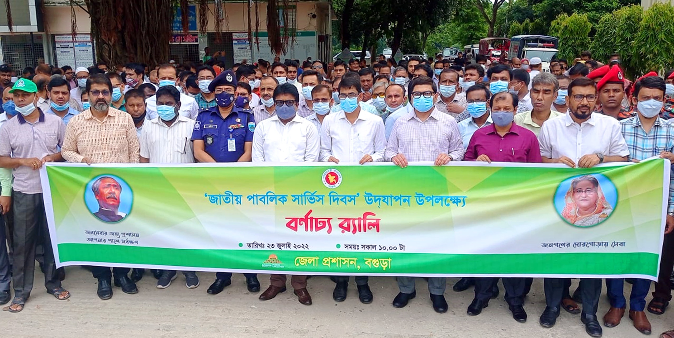 জনসেবার জন্য প্রশাসন আপনার পাশে সর্বক্ষণ এই শ্লোগানকে সামনে রেখে জাতীয় পাবলিক সার্ভিস দিবস উদযাপন উপলক্ষে বগুড়ায় র‌্যালি ও আলোচনা সভা করা হয়েছে। শনিবার সকাল ১০টায় বগুড়া জেলা প্রশাসন এ আয়োজন করে।