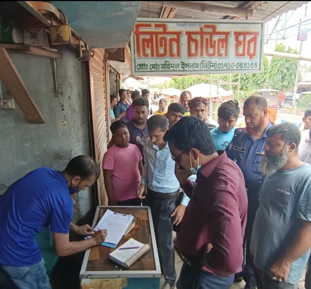 তিনি রোববার বেলা ১২ টায় শহরের কলোনী বাজার এলাকায় নিত্যপ্রয়োজনীয় পণ্যের দোকান পরিদর্শনে গেলে দোকানে পন্য ক্রয়ের ভাউচার ও পণ্য বিক্রির মূল্য তালিকা না পাওয়া সুমন চাউল ঘর কে ১ হাজার টাকা, লিটন চাউল ঘর কে ৪ হাজার টাকা, আশরাফুল আলম চাউল ঘর কে ২ হাজার টাকা, কলোনী বাজারের আরও একটি চাউলের দোকানে ২ হাজার টাকা, রানা মন্ডল মুরগি ঘর কে ২ হাজার টাকা ও তানভীর স্টোর নামের একটি মুদি দোকানে কাগজের তৈরি ঠোঙ্গার ওজন বেশি পাওয়ায় ৫ হাজার টাকাসহ সকলের কাছে থেকে সর্বমোট নগদ ১৬ হাজার টাকা জরিমানা করা হয়।