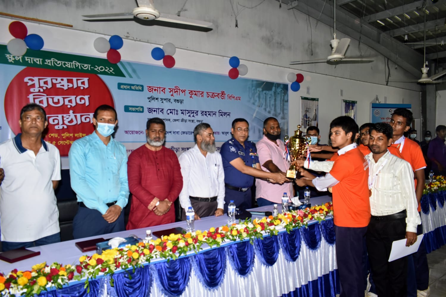 বগুড়া জেলা পুলিশ ও বগুড়া জেলা ক্রীড়া সংস্থার সার্বিক ব্যবস্থাপনায় সোমবার সন্ধ্যায় পুরষ্কার বিতরণী অনুষ্ঠানে জেলা ক্রীড়া সংস্থার সাধারণ সম্পাদক মাসুদুর রহমান মিলনের সভাপতিত্বে প্রধান অতিথির বক্তব্য রাখেন পুলিশ সুপার সুদীপ কুমার চক্রবর্ত্তী (বিপিএম)।