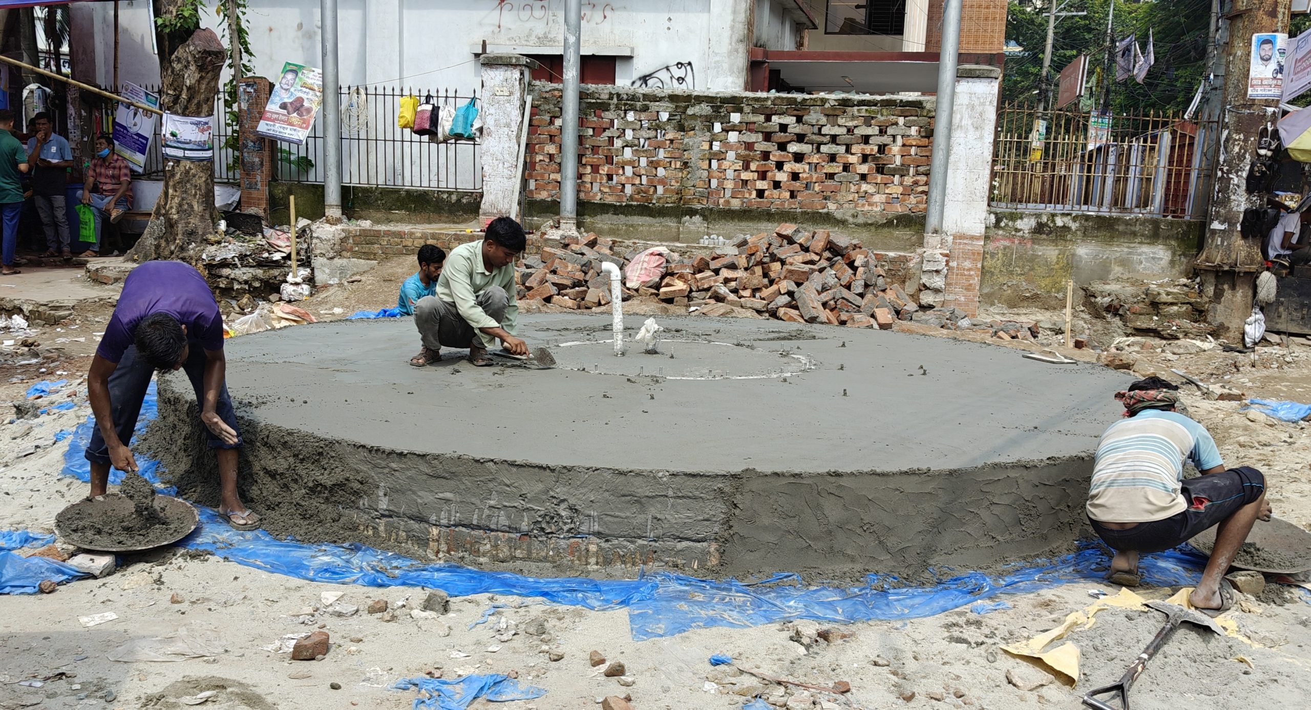 বগুড়ায় মুজিব স্মৃতি ম্যুরাল ও মঞ্চ ভেঙে নির্মাণ হচ্ছে ‘জুলাই শহীদ স্মৃতিস্তম্ভ’