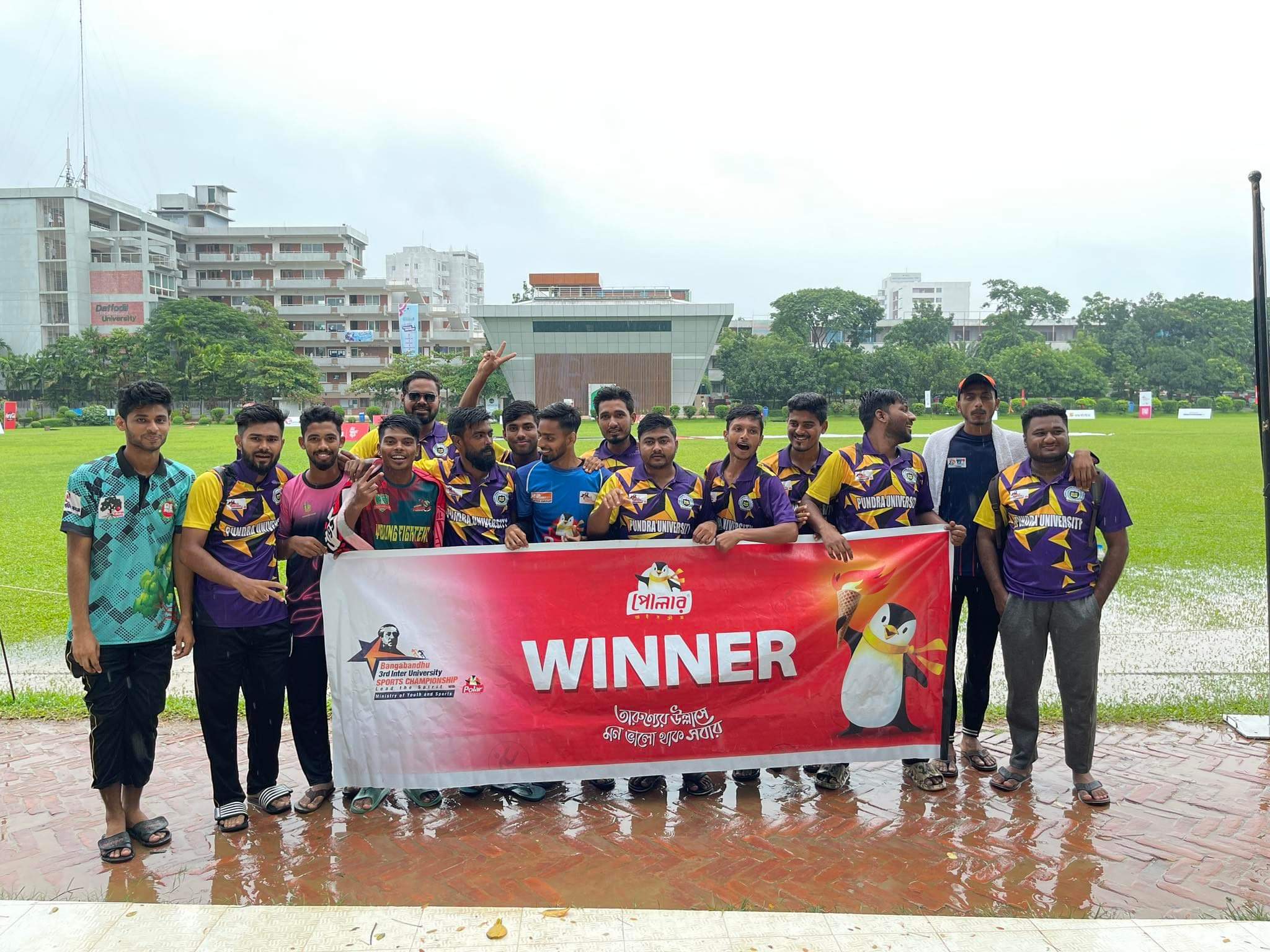 বঙ্গবন্ধু আন্তঃবিশ্ববিদ্যালয় স্পোর্টস চ্যাম্পিয়নশিপে রাজধানীর এশিয়া প্যাসিফিক ইউনিভার্সিটিকে হারিয়ে ৯৩ রানের জয় তুলে নিয়েছে বগুড়ার পুন্ড্র ইউনিভার্সিটি অফ সাইন্স এ্যান্ড টেকনোলজি। একই সাথে টুর্নামেন্টের দ্বিতীয় রাউন্ডে পৌঁছেছে দলটি।