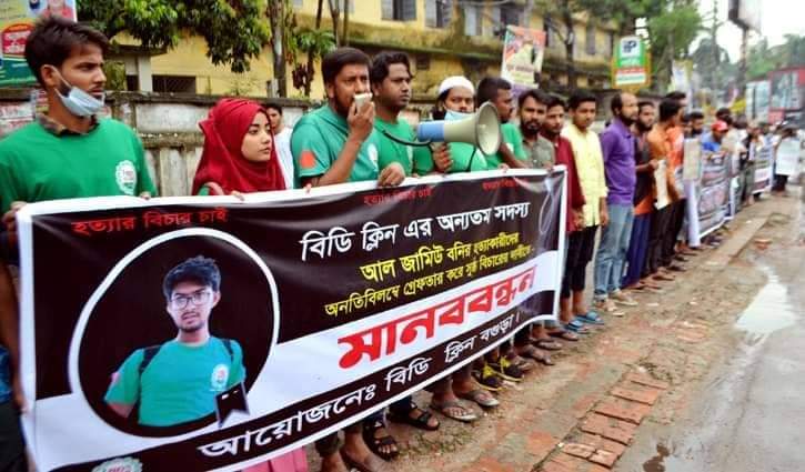 বিষয়টি সম্পর্কে সেচ্ছাসেবী সংগঠন বিডি ক্লিনের রাজশাহী বিভাগের সমন্বয়ক মাহবুব আলম বলেন, মেধাবী শিক্ষার্থী ও সেচ্ছাসেবক বনি হত্যায় জড়িতদের দ্রুত গ্রেফতার এবং তাদের শাস্তির দাবিতে মানববন্ধন করেছি। এসময় চারটি ভিন্ন ভিন্ন সংগঠনের সেচ্ছাসেবী ও বনির সহপাঠীরা ছিলেন। আমরা সুষ্ঠুভাবে মানবন্ধন করেছি।