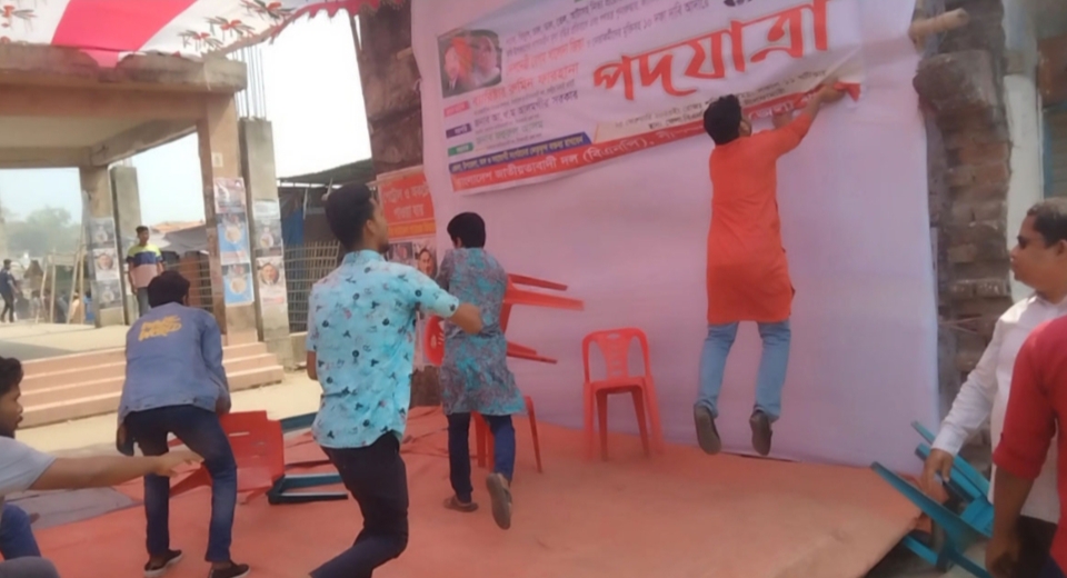 নীলফামারীতে ১০ দফা দাবিতে বিএনপি আয়োজিত পদযাত্রা কর্মসূচির মঞ্চ দখলে নেওয়ার অভিযোগ উঠেছে ছাত্রলীগের নেতাকর্মীদের বিরুদ্ধে। শনিবার (২৫ ফেব্রুয়ারি) দুপুরে এ ঘটনা ঘটে।