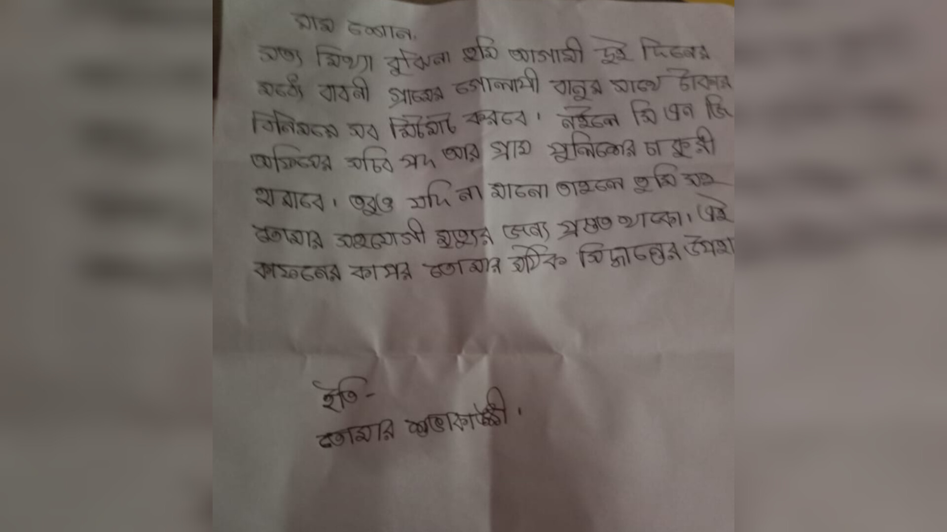 জানা যায়, বগুড়া জেলা অটোটেম্পু ও সিএনজি মালিক সমিতির সভাপতি এবং সান্তাহার পৌরসভার কাউন্সিলর ও বিএনপি নেতা আতাউর রহমান আত্তার সময়ে ২০০০ সালে সচিব পদে নিযুক্ত করা হয় হিন্দু ধর্মাবলী রাম চন্দ্রকে। এরপর ২০০৯ সালের পহেলা জানুয়ারিতে সান্তাহার ইউনিয়ন পরিষদে গ্রাম পুলিশে চাকরি নেন তিনি। একসাথে দুটি কর্মস্থলে দায়িত্ব পালন করে আসছিলেন। প্রতিদিনের ন্যায় কর্মস্থাল শেষ করে সান্দিড়া হিন্দুপাড়া নিজ গ্রামে পরিবার নিয়ে তিনি বসবাস করতেন। সম্প্রতি ২০২০ সালে রাম চন্দ্রের সঙ্গে একই ইউপির বামনীগ্রাম এলাকার গোলাপি বানুকে ভালোবেসে তিনি দ্বিতীয় বিয়ে করেন। পরে ওই সালের ২ সেপ্টেম্বর কোর্ট এফিডেফিট মাধ্যম শেষে তারা সংসার জীবনে আবব্ধ হন। বিয়ের পর থেকে স্ত্রী গোলাপি বানু তার ইচ্ছেনুযায়ী চলাচল করতো। হতো না বনিবনা। বাধ্য হয়ে একপর্যায়ে আইনগত ভাবে ২০২১ সালের ১৩ এপ্রিল মুসলিম ম্যারেজ রেজিস্ট্রার কল্যাণ সমিতিতে তালাক প্রদান করেন। তালাক নোটিশ পাওয়ার পর থেকে গোলাপী বানু ক্ষিপ্ত হয়ে তার সাথে হট্টগোল সৃষ্টি করে। এভাবে চলতে থাকে দীর্ঘদিন। চলতি বছরের ২৬মে হঠাৎ মুঠো ফোনের মাধ্যমে গোলাপী বানু অকথ্য ভাষায় তাকে গালিগালাজ ও বিভিন্ন প্রকার হুমকি ধামকি দেন। এরপর ২৮ মে বিকেলে স্থানীয় কয়েকজন প্রভাবশালী ও পুলিশসহ গোলাপি বানুকে পুনরায় রাম চন্দ্রের বাড়িতে জোর পূর্বক প্রবেশ করানোর চেষ্টা করে। এসময় রাম চন্দ্র বাধা দিলে তাকে মারধর ও বাড়ি ভাংচুর করে। এবং রাম চন্দ্রকে বাড়িতে ঢুকতে দেওয়া হবেনা বলে হুমকি ধামকি দিয়ে তাড়িয়ে দেন প্রভাবশালীরা। এরপর থেকে তিনি সান্তাহার পৌর শহরের মুক্তিযোদ্ধা মার্কেটে বগুড়া জেলা অটোটেম্পু ও সিএনজি মালিক সমিতির কার্যালয়ে কিছুদিন ধরে বসবাস করছেন। আজ মঙ্গলবার সকালে হঠাৎ দরজা খুলতেই একটি ব্যাগ দেখতে পান তিনি। ব্যাগের ভিতরে দেখতে পান কাফনের কাপড়সহ একটি চিরকুট৷ চিরকুটে লেখা ছিলো “রাম শোন সত্য মিথ্যা বুঝিনা তুমি আগামী দুই দিনের মধ্যে বাবনী গ্রামের গোলাপী বানুর সাথে টাকার বিনিময়ে সব মিটমাট (মিমাংসা) করবে। নইলে সিএনজি অফিসের সচিব পদ আর গ্রাম পুলিশের চাকুরী হারাবে। তবুও যদি না মানো তাহলে তুমিসহ তোমার সহযোগী মৃত্যুর জন্য প্রস্তত থাকো। এই কাফনের কাপর তোমার সঠিক সিদ্ধান্তের উপহার”। এই ঘটনার পর থেকে ভুক্তভোগী রাম চন্দ্রসহ তার পরিবার নিরাপত্তাহীনতায় ভুগছেন এবং থানায় জিডি দায়েরের প্রস্তুতি নিচ্ছেন তিনি। সান্তাহার পুলিশ ফাঁড়ির উপ-পরিদর্শক বকুল হোসেন জানান, খবর পেয়ে সেখান থেকে কাফনের কাপড়, চিরকুটসহ ব্যাগটি উদ্ধার করা হয়েছে। এই ঘটনায় আইনি পদক্ষেপ প্রক্রিয়াধীন।