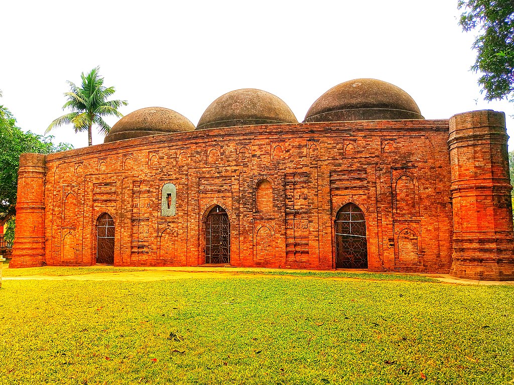 একই সাথে মিনার, গম্বুজ ও ইটের বৈচিত্র্যময় গাঁথুনি মিলে পুরো স্থাপনাটি বেশ নান্দনিক আকাড় ধারণ করেছে। তবে আষাঢ়ের বৃষ্টিতে স্থাপনাটি নিজের সৌন্দর্য্য যেন আরো উজার করে দিচ্ছিলো।