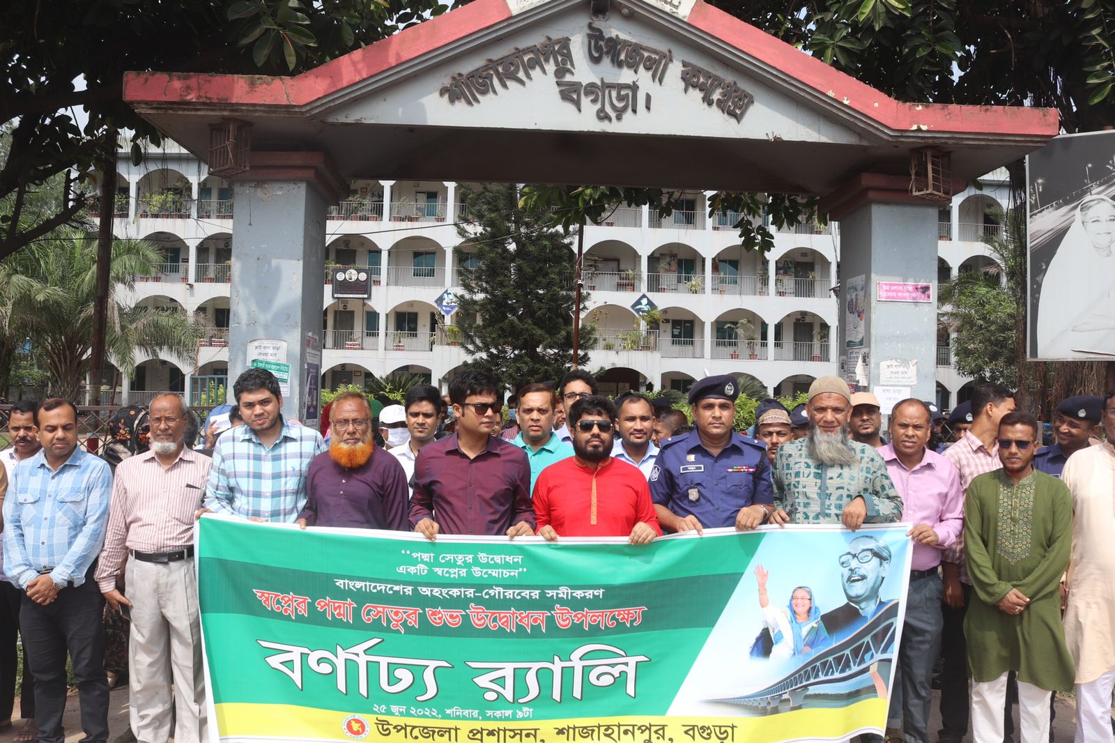 বগুড়ার শাজাহানপুরে বিপুল উৎসাহ উদ্দীপনার মধ্যে দিয়ে স্বপ্নের পদ্মা সেতুর উদ্বোধনী অনুষ্ঠান উদযাপন করেছে উপজেলা প্রশাসন।