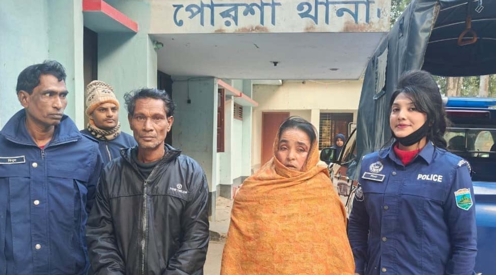 পোরশায় গাঁজা ও ট্যাপেন্টাডল ট্যাবলেটসহ স্বামী-স্ত্রী আটক
