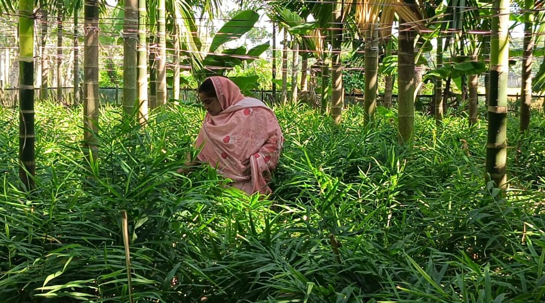 লালমনিরহাটে বাণিজ্যিকভাবে বস্তায় আদা চাষ করে সফল নারী উদ্যোক্তা ময়না বেগম