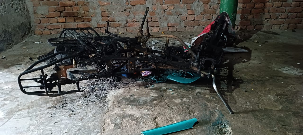 ধুনটে সংযোগ লাইন থেকে আগুন লেগে কৃষকের গোয়ালঘর পুড়ে ছাই