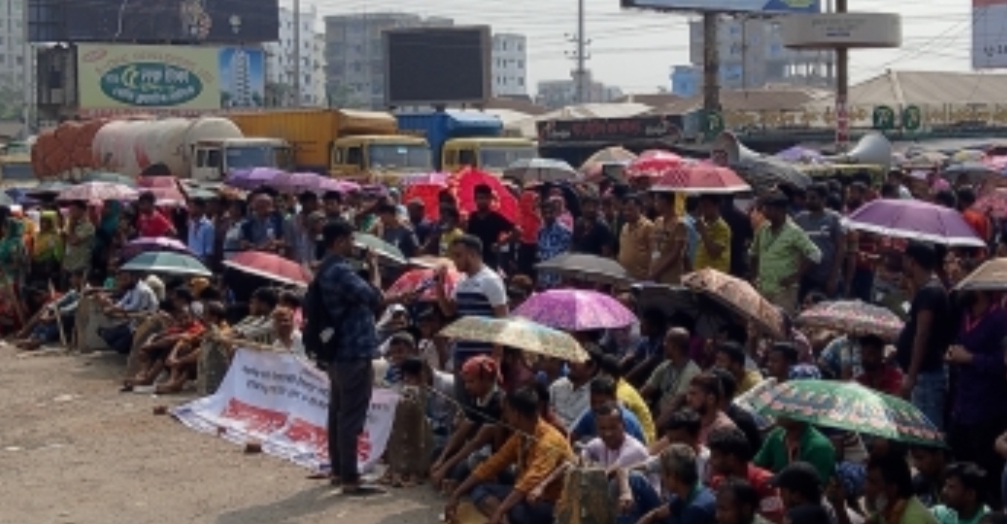 সাভারে মহাসড়ক অবরোধ করে শ্রমিকদের বিক্ষোভ, ভোগান্তি চরমে