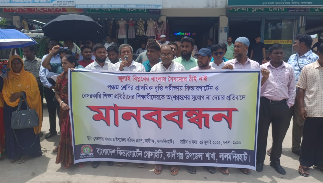 কিন্ডারগার্টেন শিক্ষার্থীদের সঙ্গে বৈষম্য, প্রতিবাদে কালীগঞ্জে মানববন্ধন
