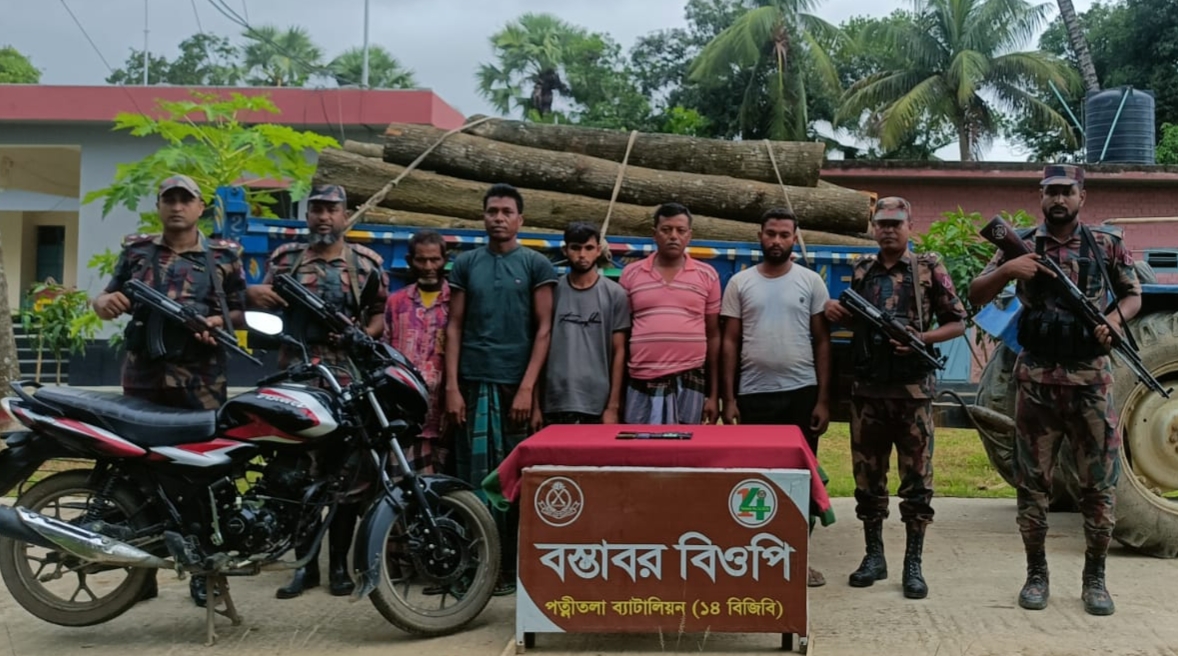 ভারতে পাচারকালে বিজিবির হাতে আটক-৫; আকাশমণি কাঠ জব্দ
