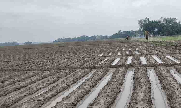 জমিতে জমেছে পানি; পচে যাওয়ার আশঙ্কায় আলু, লুটিয়ে পড়েছে ধান-সবজির গাছও
