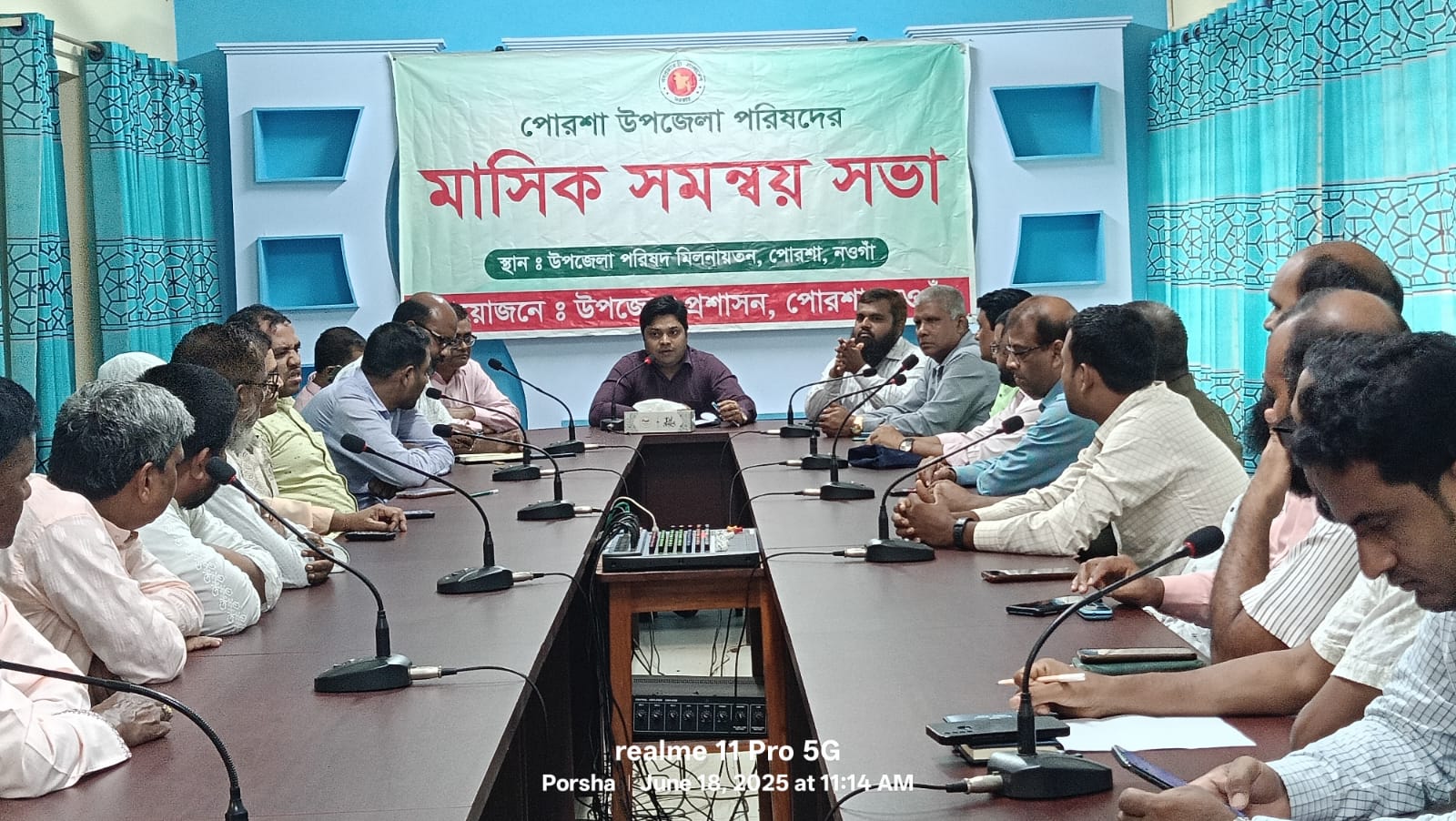 পোরশায় মাসিক সমন্বয় সভা অনুষ্ঠিত
