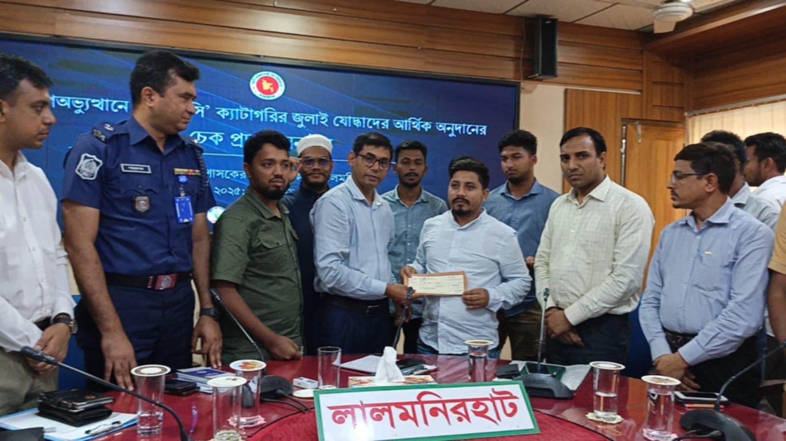 লালমনিরহাটে জুলাই অভ্যুত্থানের সম্মানে ৪৮ যোদ্ধাকে চেক বিতরণ