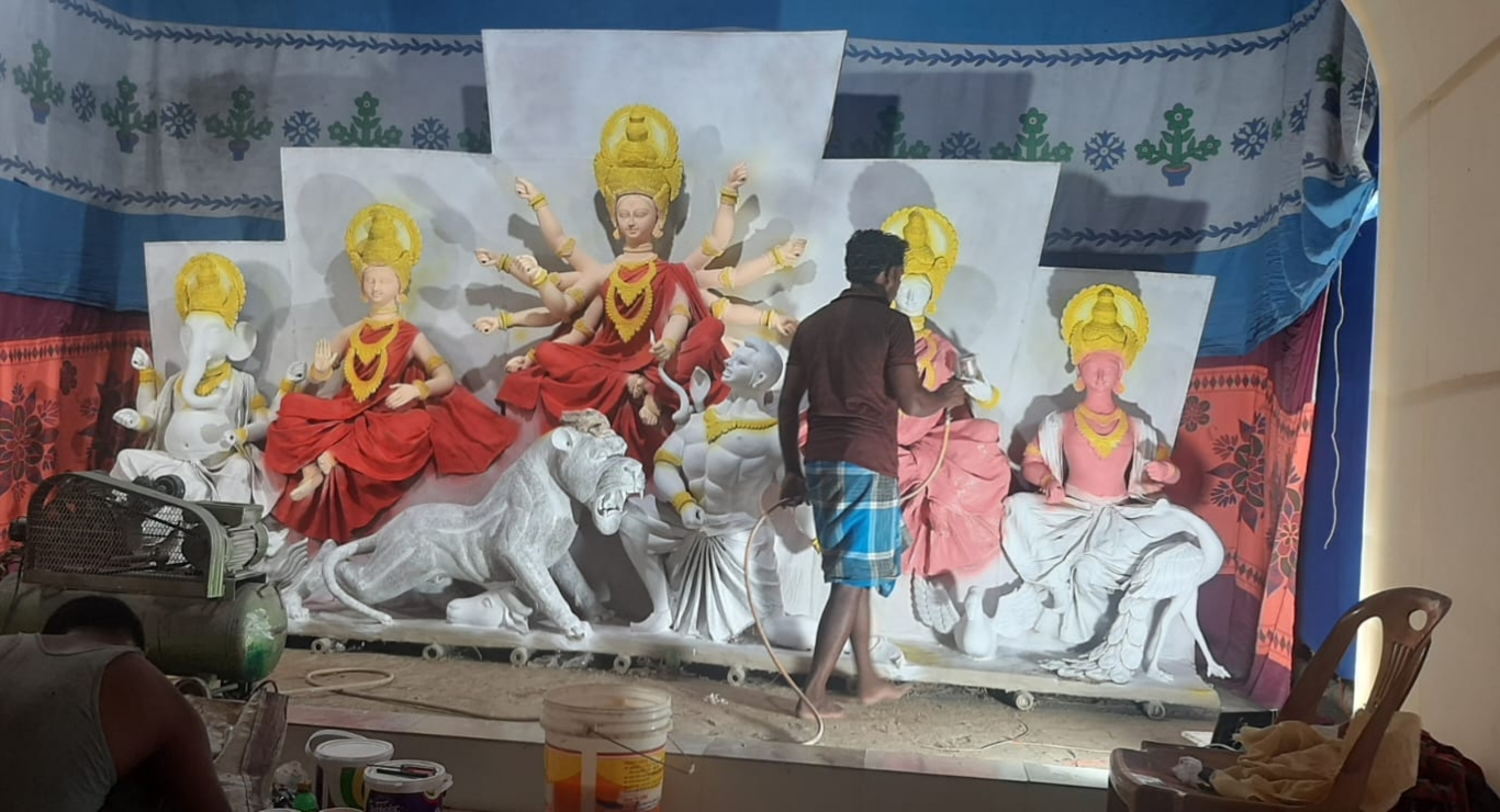 দেবীদুর্গা মর্তলোকে আসছেন গজে চড়ে; ফিরবেন দোলায়