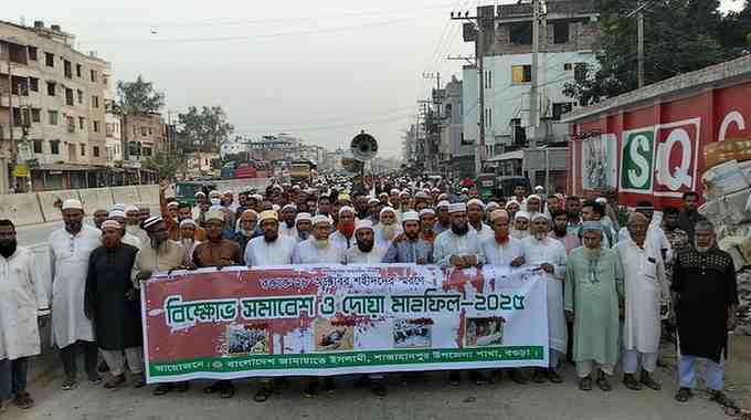 শাজাহানপুরে জামায়াতে ইসলামী’র বিক্ষোভ র্যালি ও দোয়া মাহফিল