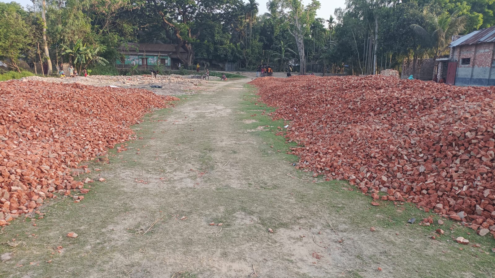ফুটবল মাঠে চলছে খোয়া ভাঙা; ক্ষুদে খেলোয়াড়দের ক্ষোভ
