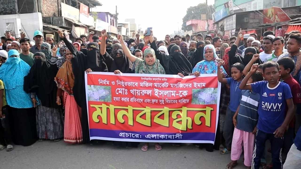 মসজিদের ইমাম হত্যার বিচার চেয়ে এলাকাবাসীর মানববন্ধন