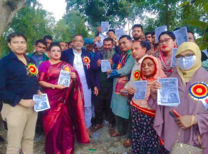 শাজাহানপুরে ধানের শীষে ভোট চেয়ে গণসংযোগ ও লিফলেট বিতরণ